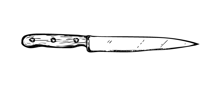 7" drop forged stainless steel flexible slicer with riveted black POM handle with Pikas Spade insignia.
