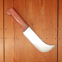 Mysterious new old stock stainless butcher knives from Thiers in the 1950s or 60s. Stainless blades are sharpened on the outside of the curve and handles are a dyed beechwood.