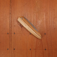 These French friction folders are known as Capuchin in France for the resemblance if held upside down of the pommel to a monks hood. They are a very old style of construction with a pin behind the tang to stop the blade as it opens, but no lock, this design goes back hundreds of years and was popular among farmers and working people as a reliable inexpensive knife in Ariège close to the Pyrenees at the Spanish border. David's take on them are simple and elegant, they feel comfortable in the hand and will age nicely with use.