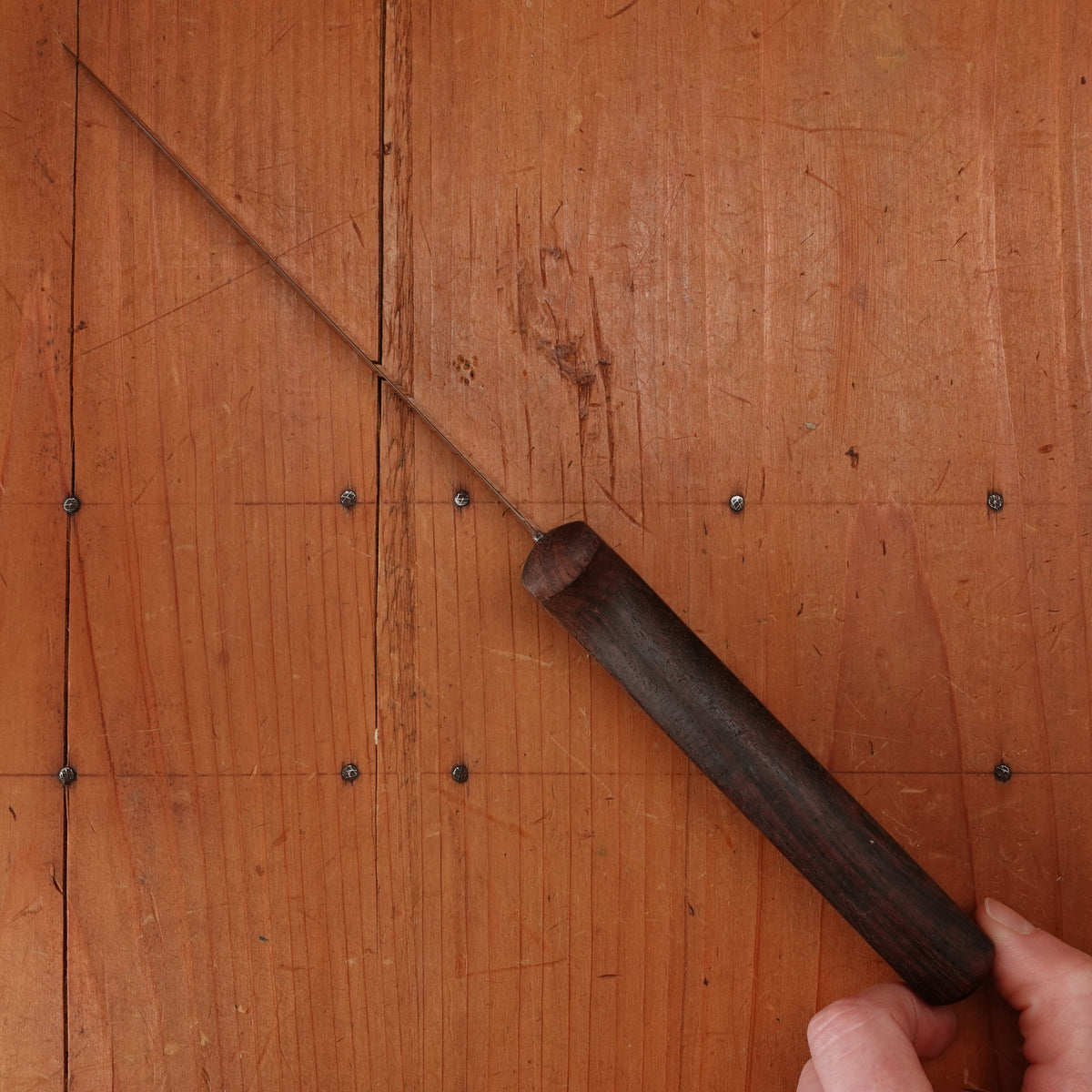 This boning knife has a fresh sharp stainless blade and a rosewood handle, there are a few scratches on the blade, but it is otherwise nice and full and handle is in great shape.