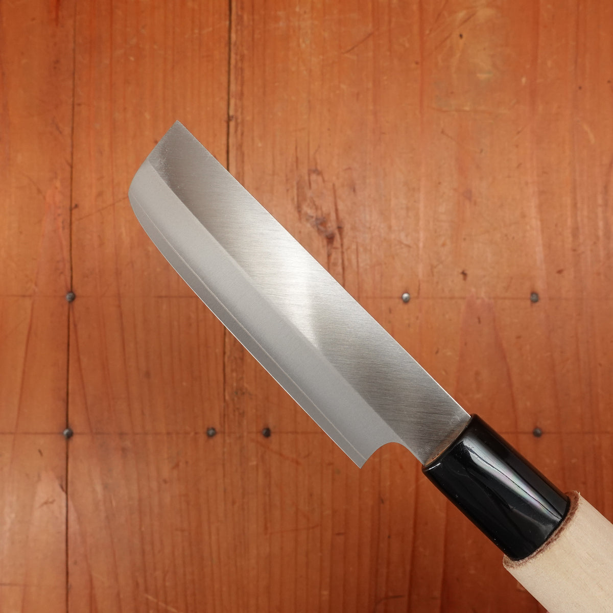 Misuzu 85mm nakiri with stainless clad VG10 stainless blade and PC ferruled ho wood handle.