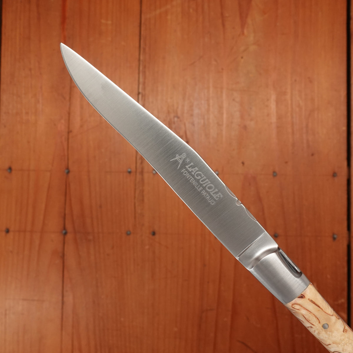 Fontenille Pataud Laguiole Steak Knife Set Stainless Curly Birch Handles - 6 Pieces