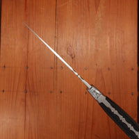 We recommend hand sharpening on whetstones. We have found that most western knives perform best with a medium finish starting around 1000 grit. Avoid pull through sharpeners and non-water cooled mechanized sharpening. Steel honing rods work well with this knife.