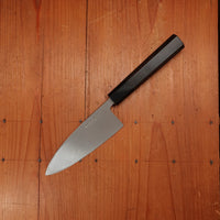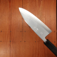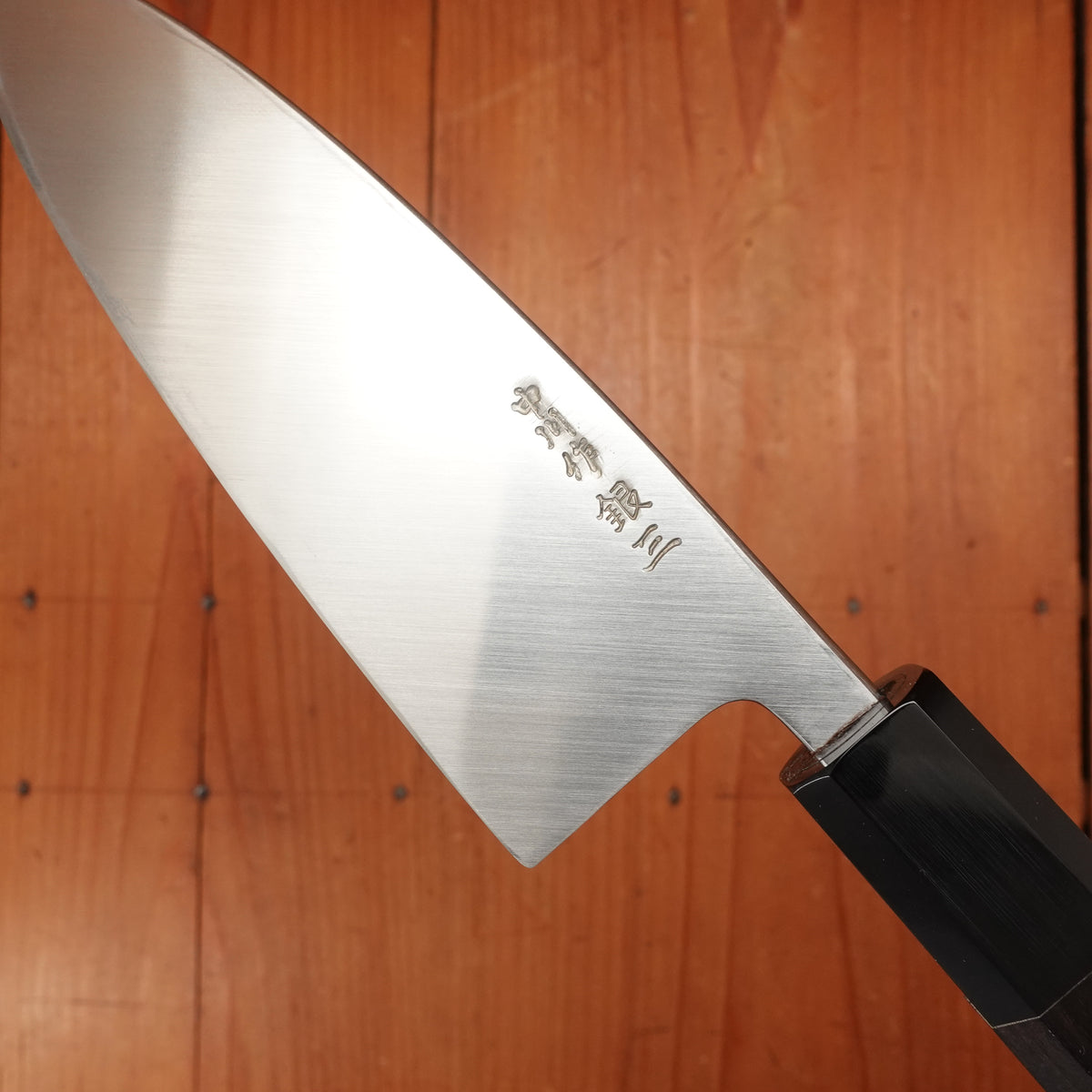 Nakagawa-san's knives are characterized by superb edge formation and edge life with good toughness. This is due to excellent heat control during forging and a very thorough heat treatment. His carbon steels are easy to sharpen across most steel types. Nakagawa-san is one of only a few blacksmiths in Sakai to forge Ginsanko and VG10 stainless steels. His ginsanko is one of the best we have used and sharpened, with superb edge life, toughness and edge formation.