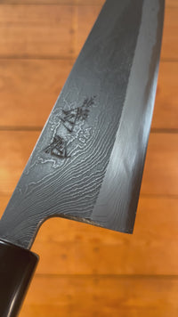 Hinoura-San’s 'Unryu' is hand-forged with a #2 shirogami, or white steel core, and a layered iron and mild steel cladding. Tsukasa Hinoura is famous for his heat treatments, coaxing incredible edge life and toughness out of the materials as well as creating mesmerizing patterns in his suminagashi damascus cladding.