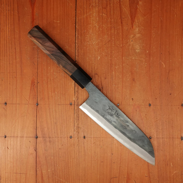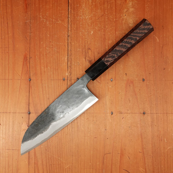 Hatsukokuro Sumi 165mm Santoku Iron Clad Aogami 2 Kurouchi Wedge Handle