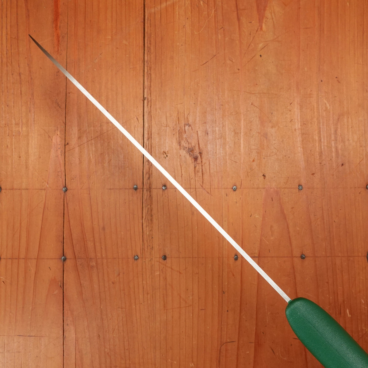 10" stainless steel bullnose butcher's knife with green plastic ergonomic handle from the Pikas-Don Carlos line.